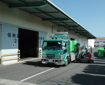 大型トラックが何台も同時に搬入できる倉庫前の屋内作業場は、商品を雨風や直射日光にさらすことなくゆったりと荷捌きできるスペースを確保。専用の出入口がありますので荷役作業の流れもスムーズに行なえます。